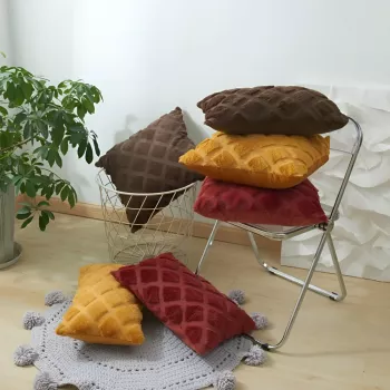 Set of 2 Decorative Boho Plush Throw Pillow Covers – Faux Wool Cushion Covers for Sofa & Bed