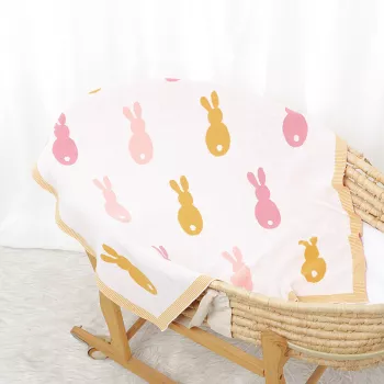 Soft Cotton Knit Baby Blanket with Cute Cartoon Rabbits 35x28 Inches